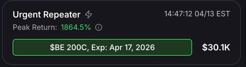 Also, just wanted to highlight that the urgent repeater flow we highlighted in yesterday’s email was up for nearly 2000% today!! Unfortunately, I had no position in this one! This was a crazy move.